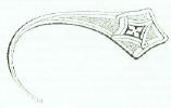 632. POINT OF A SHOE, nine inches in length, and retaining its original padding of fine moss. It affords an excellent example of the ridiculous extravagance of the fashion of long-pointed shoes in the reign of Richard II, when it is said they were occasionally so long as to be forced to be chained to the knee. [MME 1856, 7-1, 1740*]
