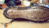 8. The insole was beaten to the last to try to shape it. |