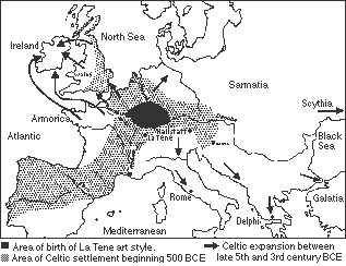 The La Téne culture followed in the fifth century BCE, when the tribes began to migrate in all directions. This explanation is supported largely by patterns of artifacts with distinctive art styles and common construction techniques, as well as by linguistic affinities.