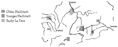 The traditional view of the Celtic migrations is related to the explanation of the "Indo-European" expansion, with waves of migrations and conquests of land. This older stance claims that the early Celts held a large region in southern Germany, shown in black on the map. This early culture is known as the Hallstatt culture, and dates to about the seventh century BCE.