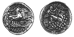 Most Celtic art is highly abstract and stylised. Many times the artist would extract and exaggerate the most salient or important features of the subject. For example, the Celtic rendition (right) of this Macedonian coin (below, left) shows how the artist stylised the horses' bodies from a more naturalistic model.