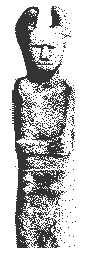 This sandstone pillar stands more than six feet tall. Its base was cut to fit into a slot, suggesting its makers had familiarity with woodworking techniques. There are faces on both sides of the statue, earning it the name "Janus."