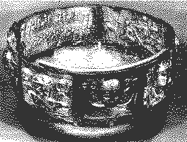 The Cauldron is made of solid and gilded silver, fourteen inches high and twenty eight inches in diameter, with a capacity of over 34 gallons. It is made of five inner and seven outer plates.