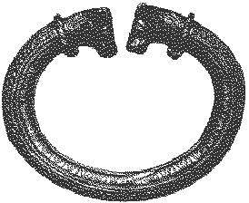 The terminals of this torc depict bulls, also wearing torcs. This mighty silver torc, like the Gundestrup Cauldron, shows signs of eastern influence. It weighs over thirteen pounds, although this is mostly due to the iron core of the torque.