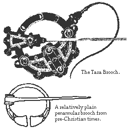 More ornamental than functional (a sign of the wealth of the owner), the eighth-century Tara Brooch is of the "annular" style. An annular brooch consists of a circle of metal, with a freely-swinging pin attached.